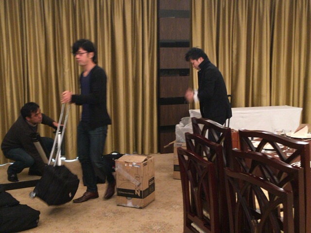 これからセッティングです。 説明を聞いてます。