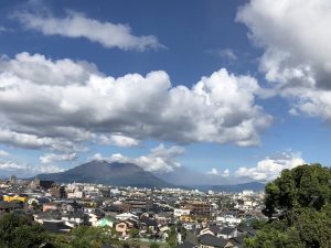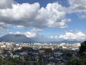プレイバック。お昼に桜島に虹が架かりました🌈 (^O^)薄いですが、低い感じで。。