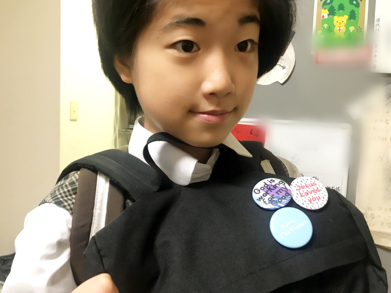 visionバッヂつけて、元気に登校! 東フィラデルフィヤ シオン