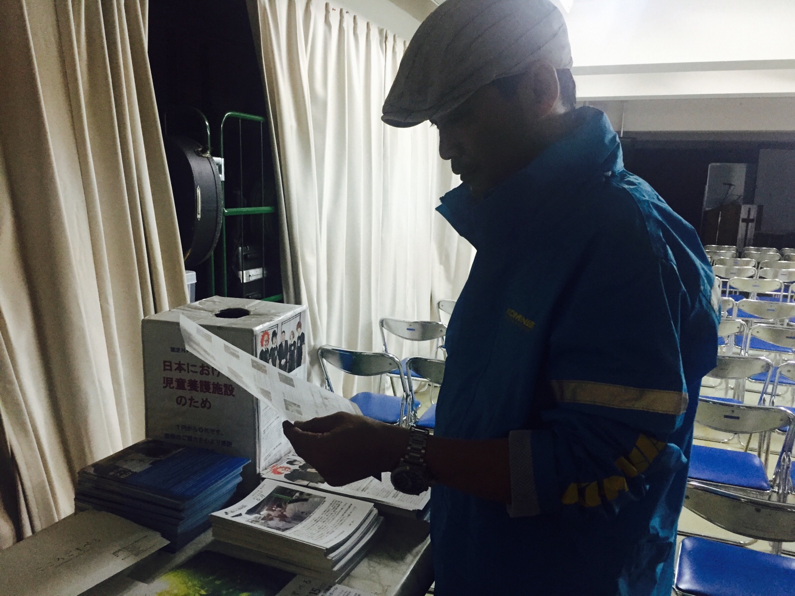 新しくできたこころごすぺるのちらしを手に取るヒロトさん^_^ shoko