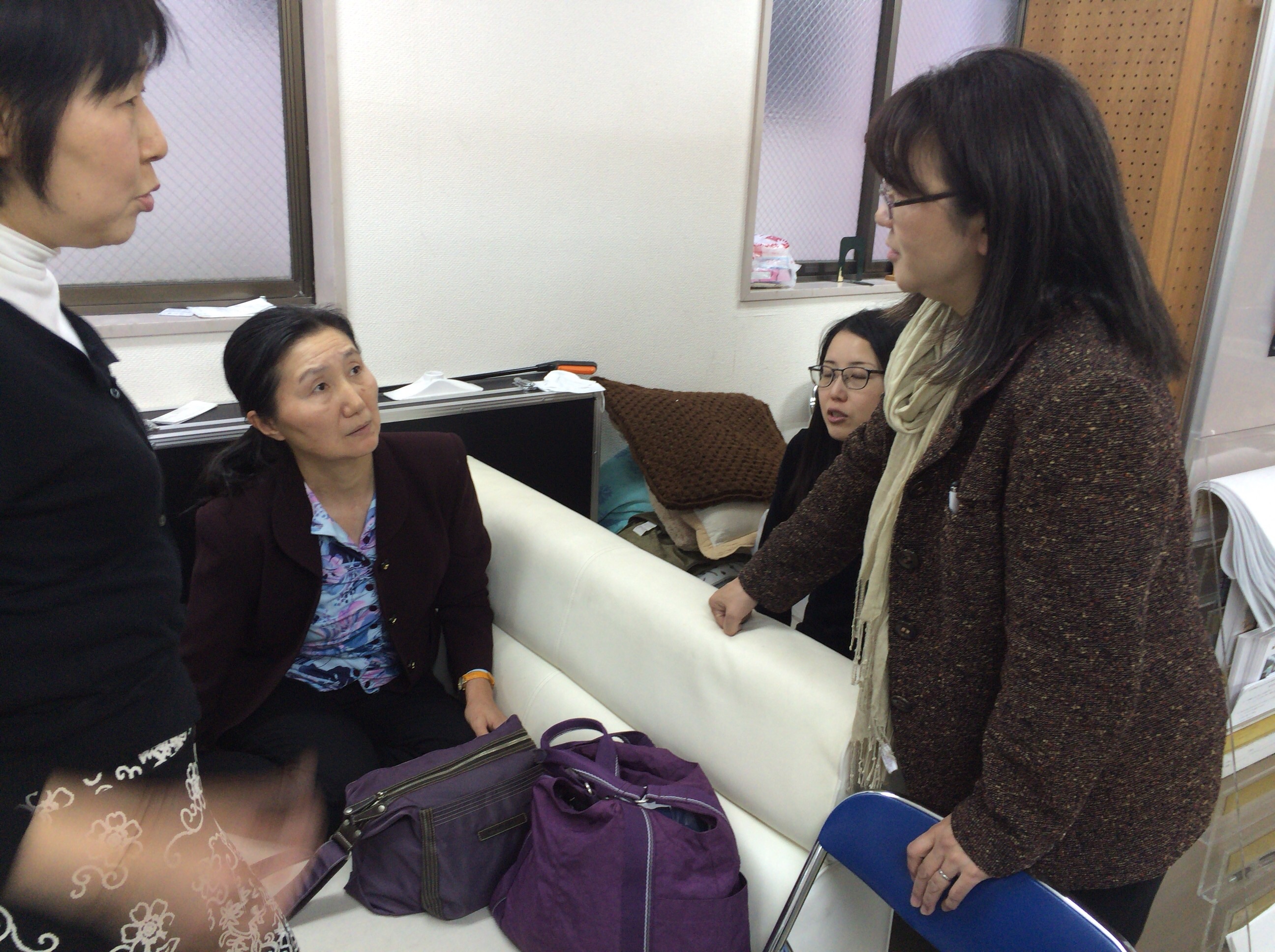 ジョイさんが神学校事務所から来られました。 授業の打ち合わせ中です。
