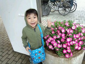 お花とダビくん。会場に到着しました。