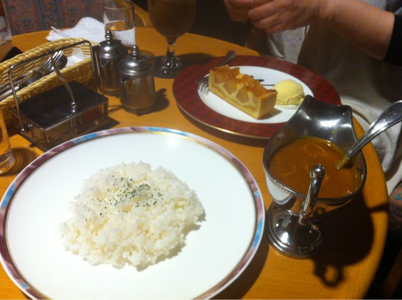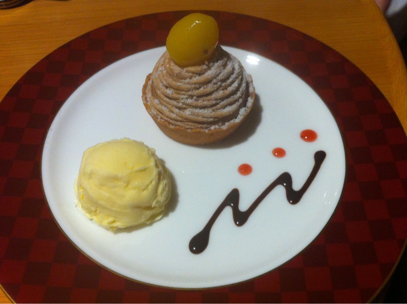 軽食で、シーフードカレーとコーヒーとモンブランのケーキでした。