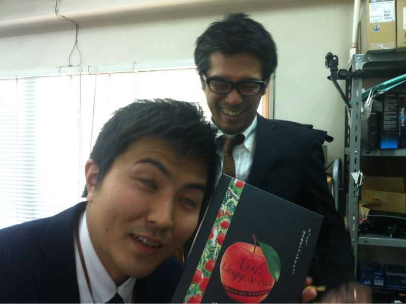 もうすぐ始まるゴスペル番組GLTVスタッフのヒロトさんが青森からおみやげを… お隣で喜びの顔をする出西プロデューサー