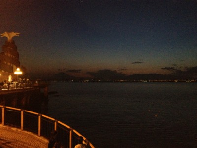 帰ります。 夜景の左はしに富士山が見えます。