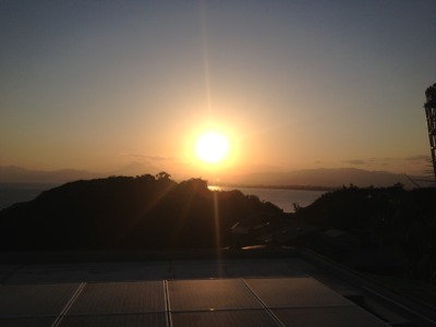 きれいな夕日を見てから帰ります。