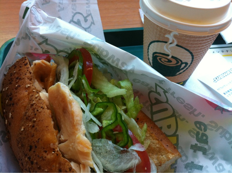 撮影は無事に終わりました! ただいまSUBWAYでランチ中〜 セットで500円でした。おいしいです(^^)