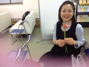 今日はJさんのお母さんのお誕生日で、お花とみことばを添えて、バームクーヘンをプレゼントされるそうです。