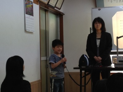 独唱中?ではなく、献金の感謝のお祈りをしている1年生なりたてのDくん!
