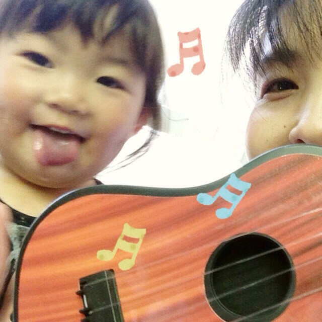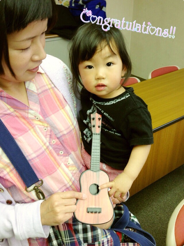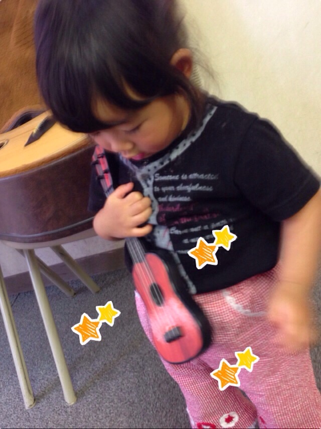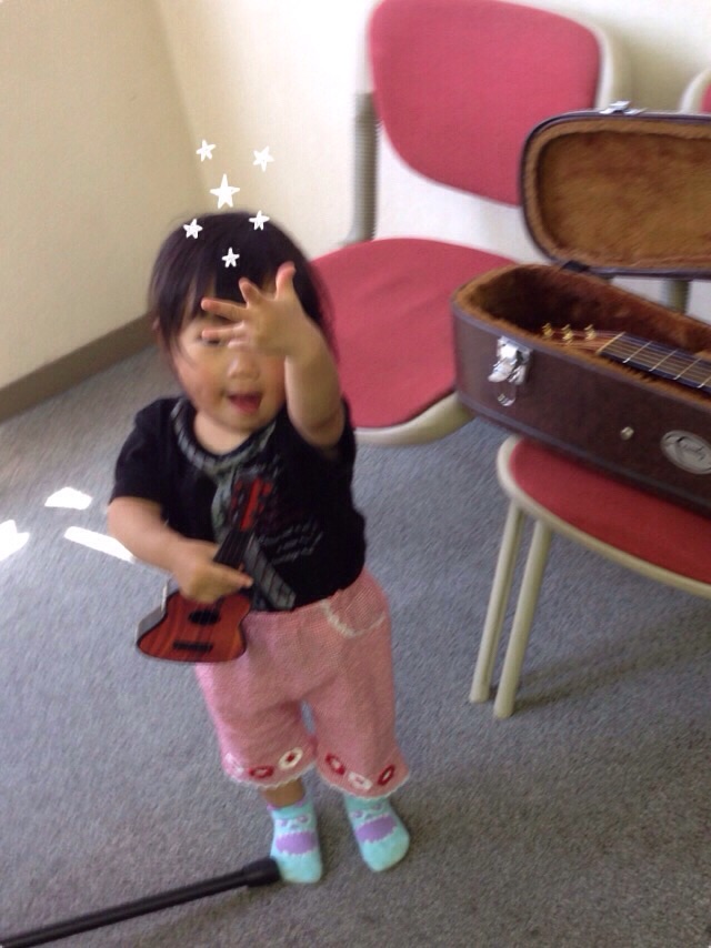 いただいたギターかな?ウクレレ?で喜びの舞♬*(๑・∀・๑)♡。 富士フィラデルフィヤ教会ta