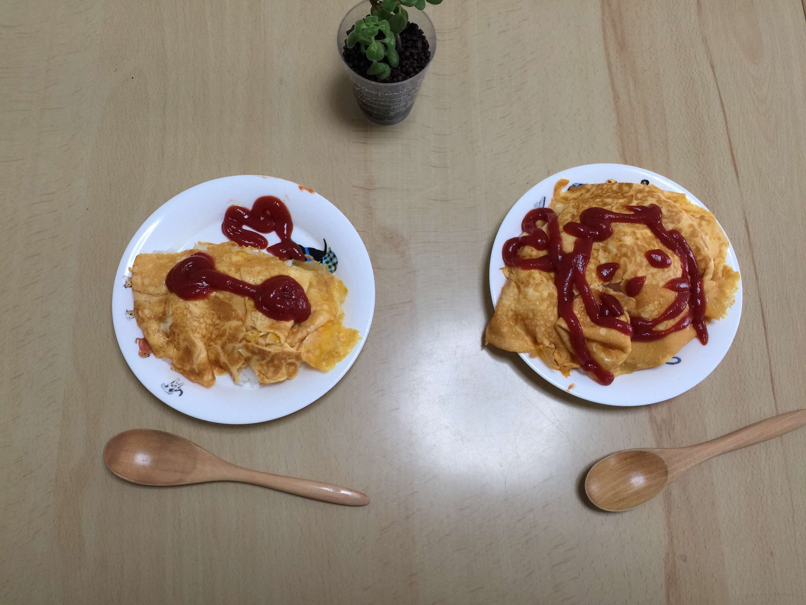 何とかオムライスが出来ました♪ベイマックスは息子。お顔は、娘用。リクエストにより、サイズが異なります꒰ ´͈ ꒳ `͈ ꒱ゞ