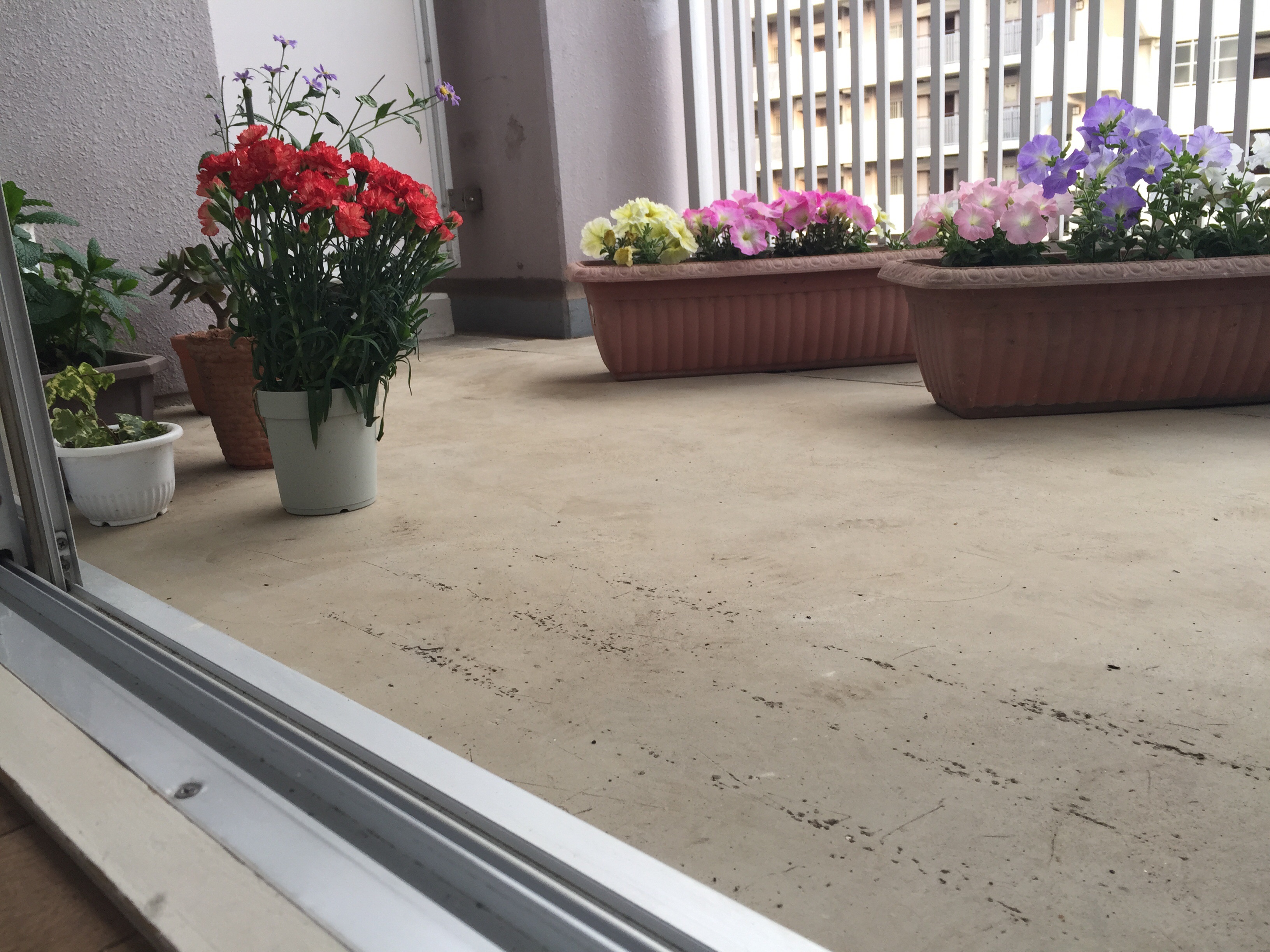 昨日あげたカーネーション♪ ベランダのお花たちの仲間入りしてます꒰⑅°͈꒳°͈꒱ いやぁ、今朝は寒い。。空気がひんやりしてます☆