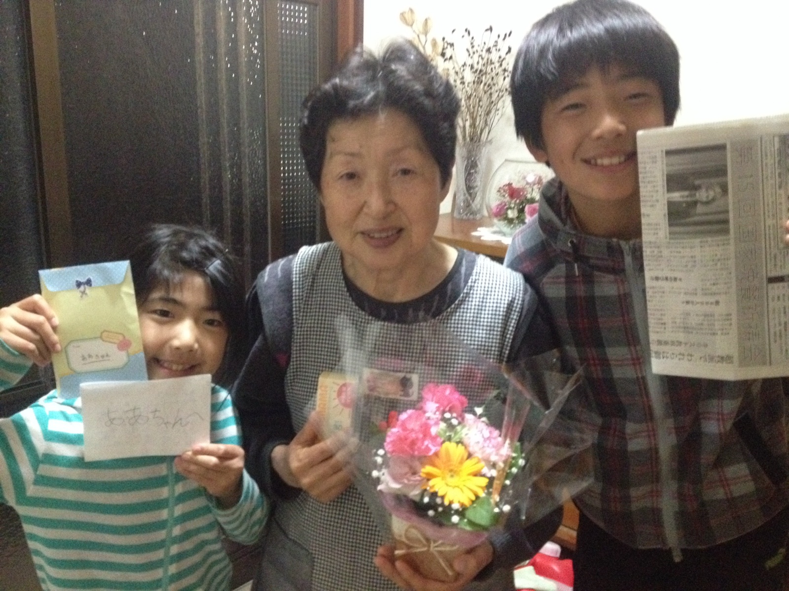 昨日の母の日。 多忙な息子に代わって、セルフサービスで母の日イベントを行いました。 ケーキの請求書は、東京の息子へ? おいしかったよ〜。ありがとう! カードは、CSのヤマちゃんからもらいました。(^O^)