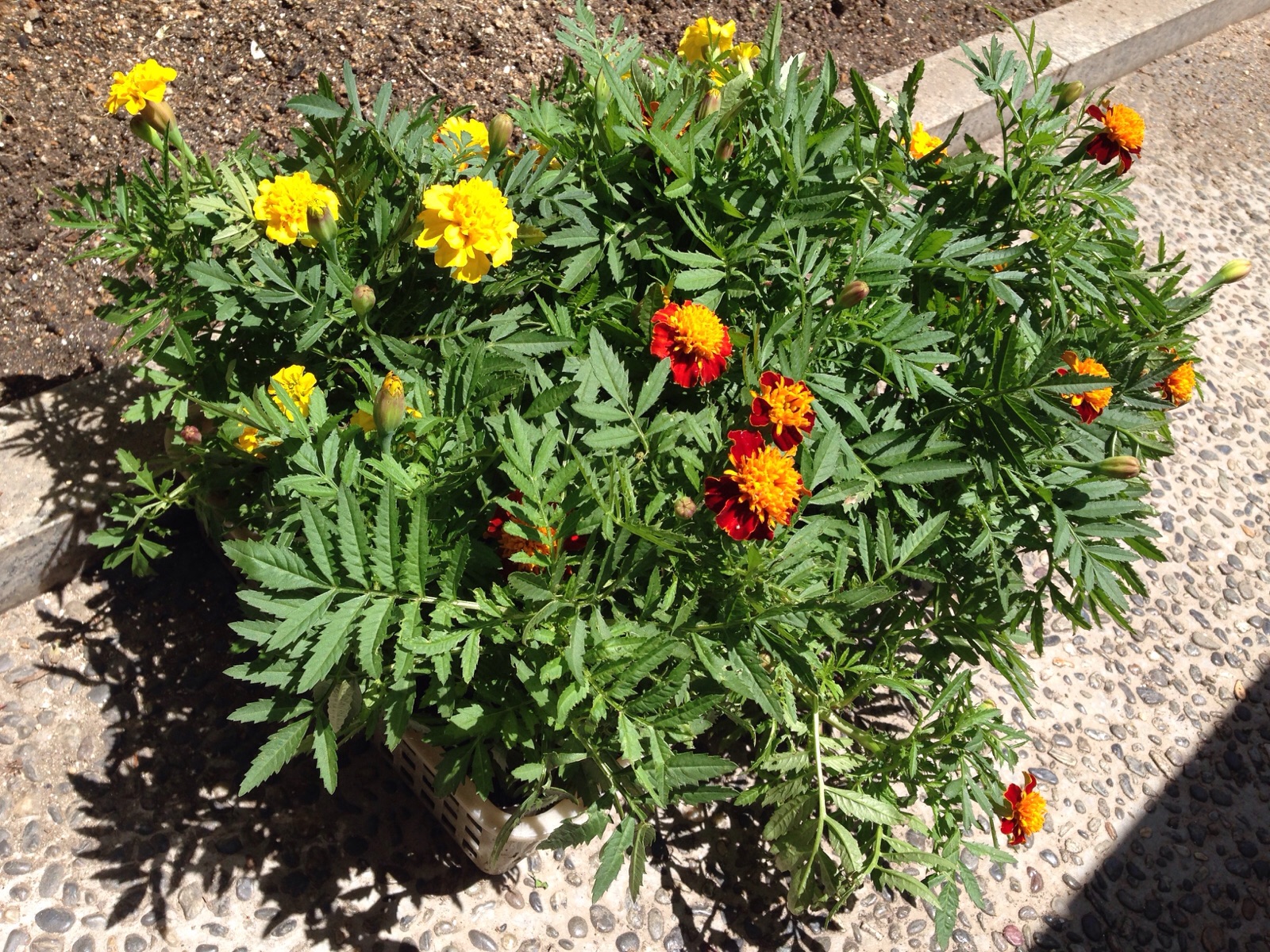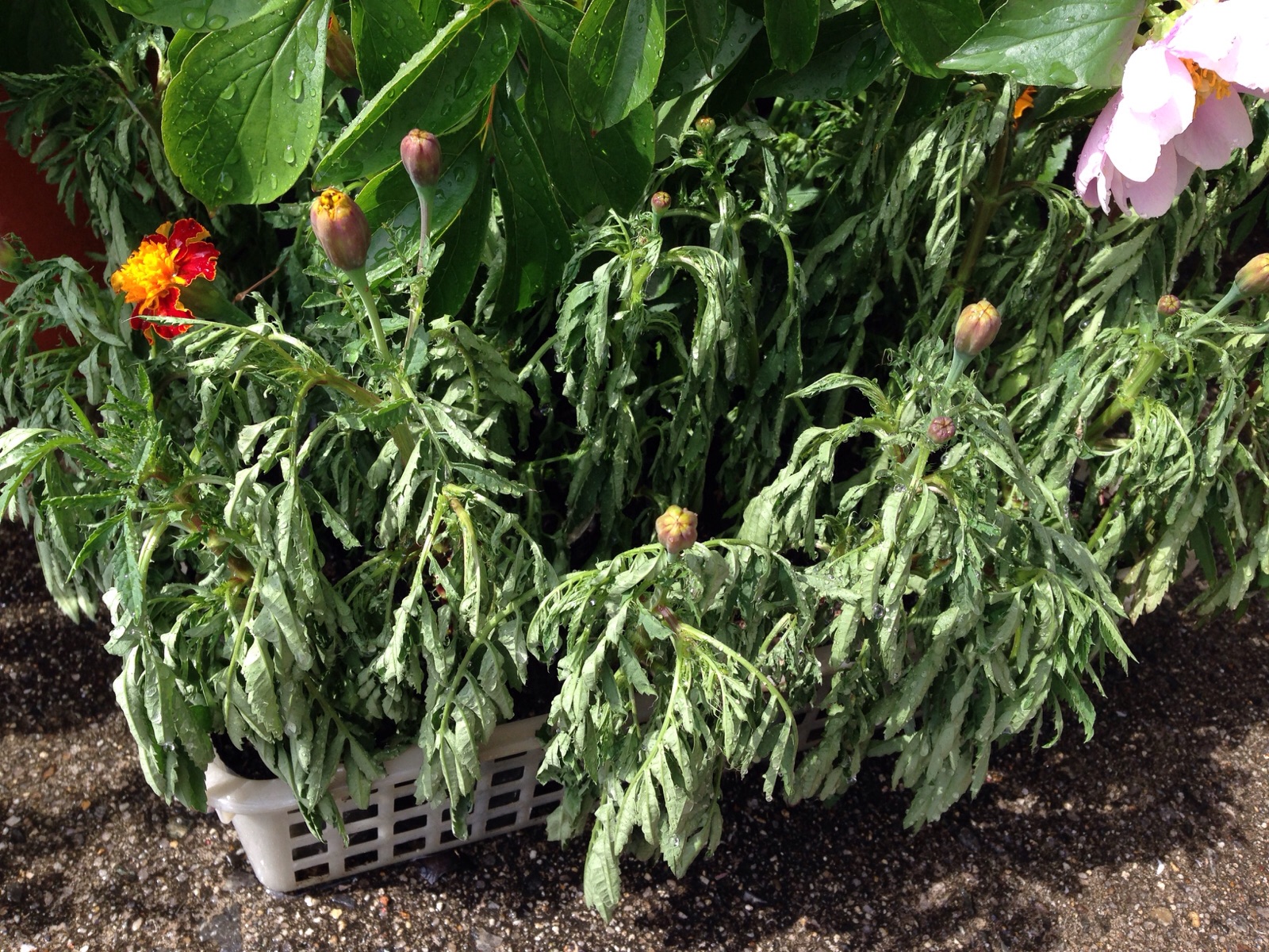 こんな姿になっていた マリーゴールドの苗、 今日、見たら、 岡山 村上ょ