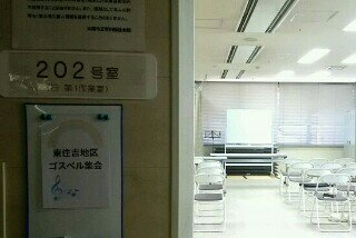 今日はここで東住吉地区集会があります。前半ゴスペルで後半集会に、なってます。\(^o^)/