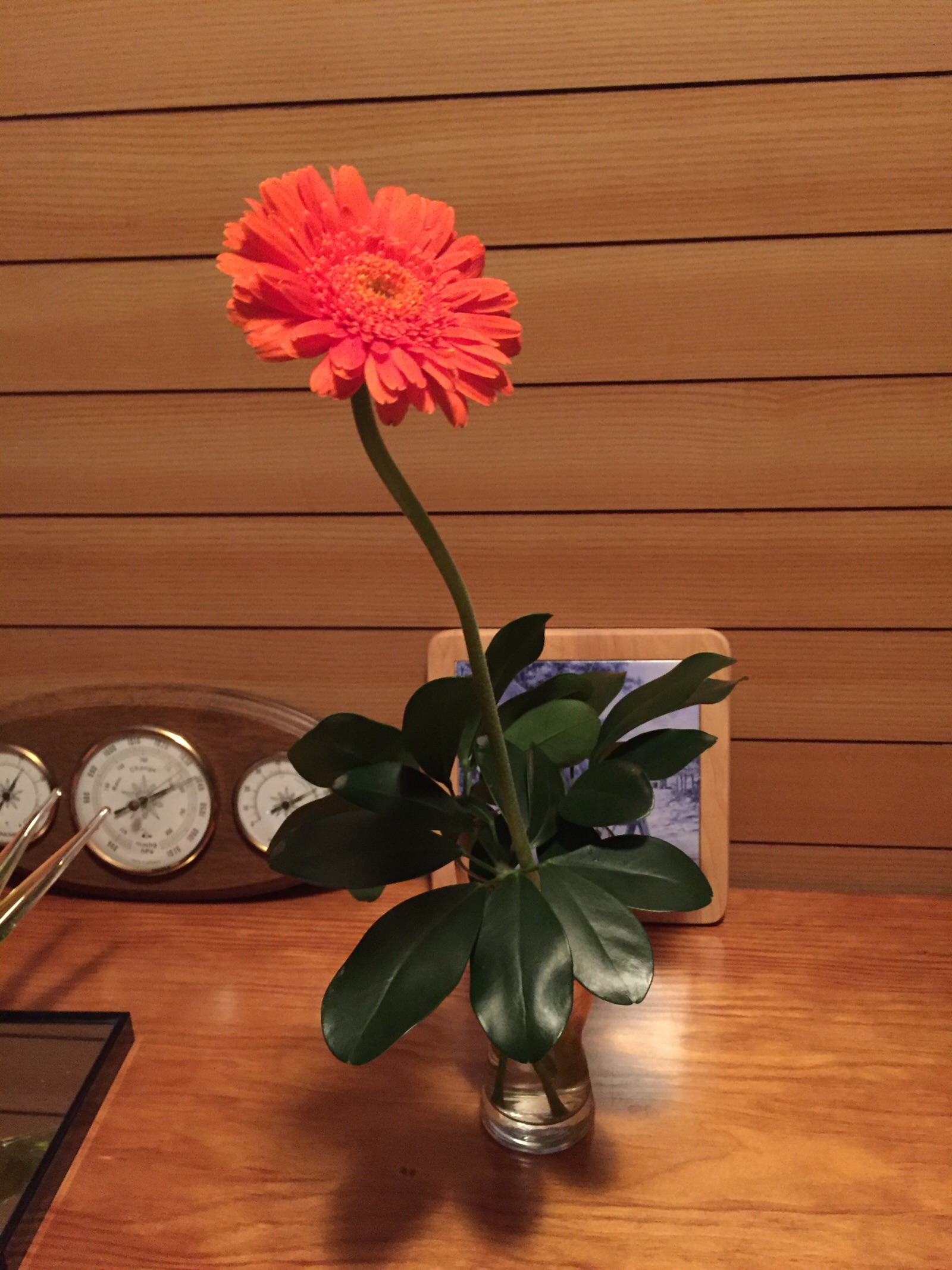 母の日にいただいたお花に、庭の葉っぱでアレンジしてみたら、素敵です。
