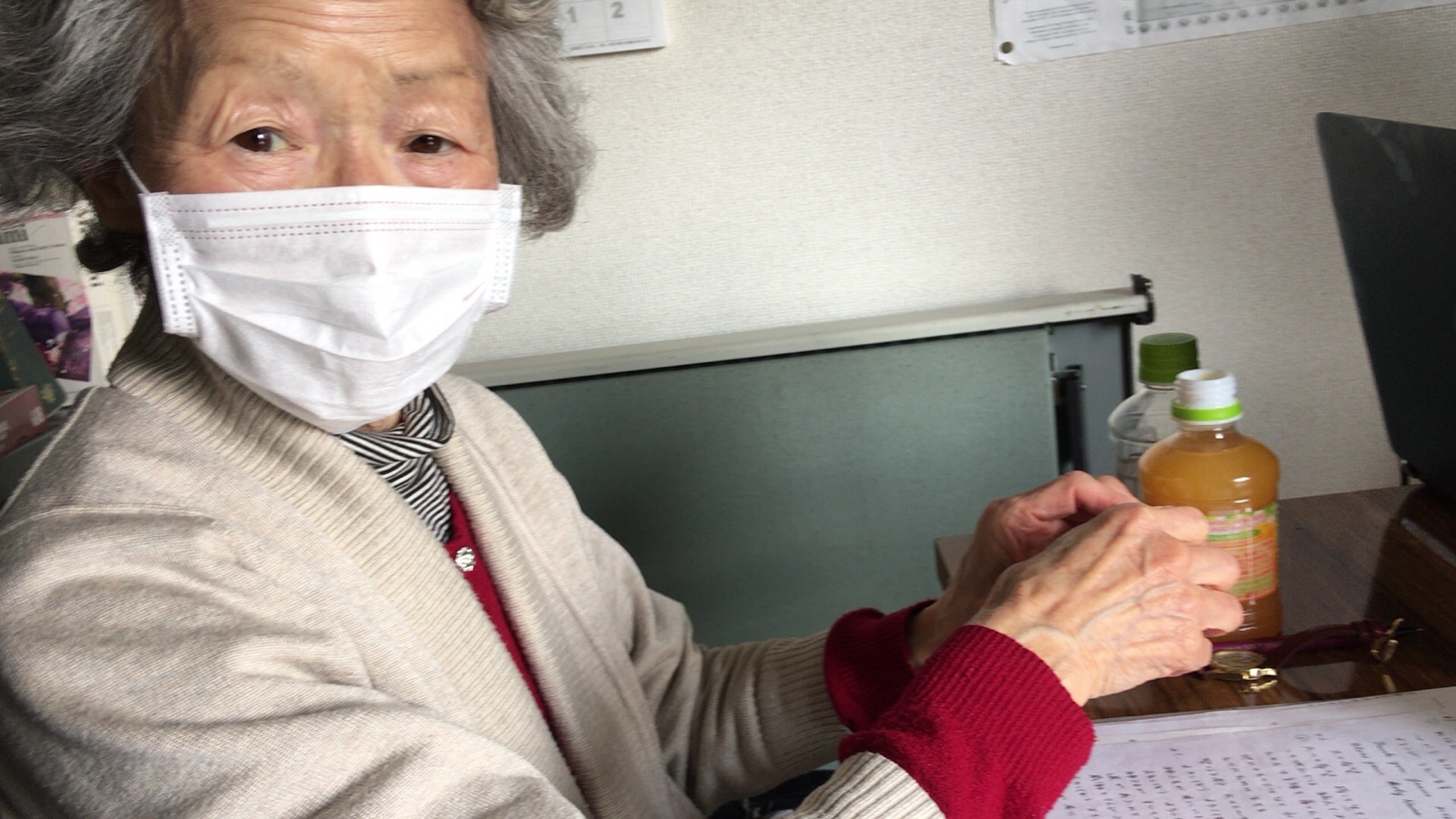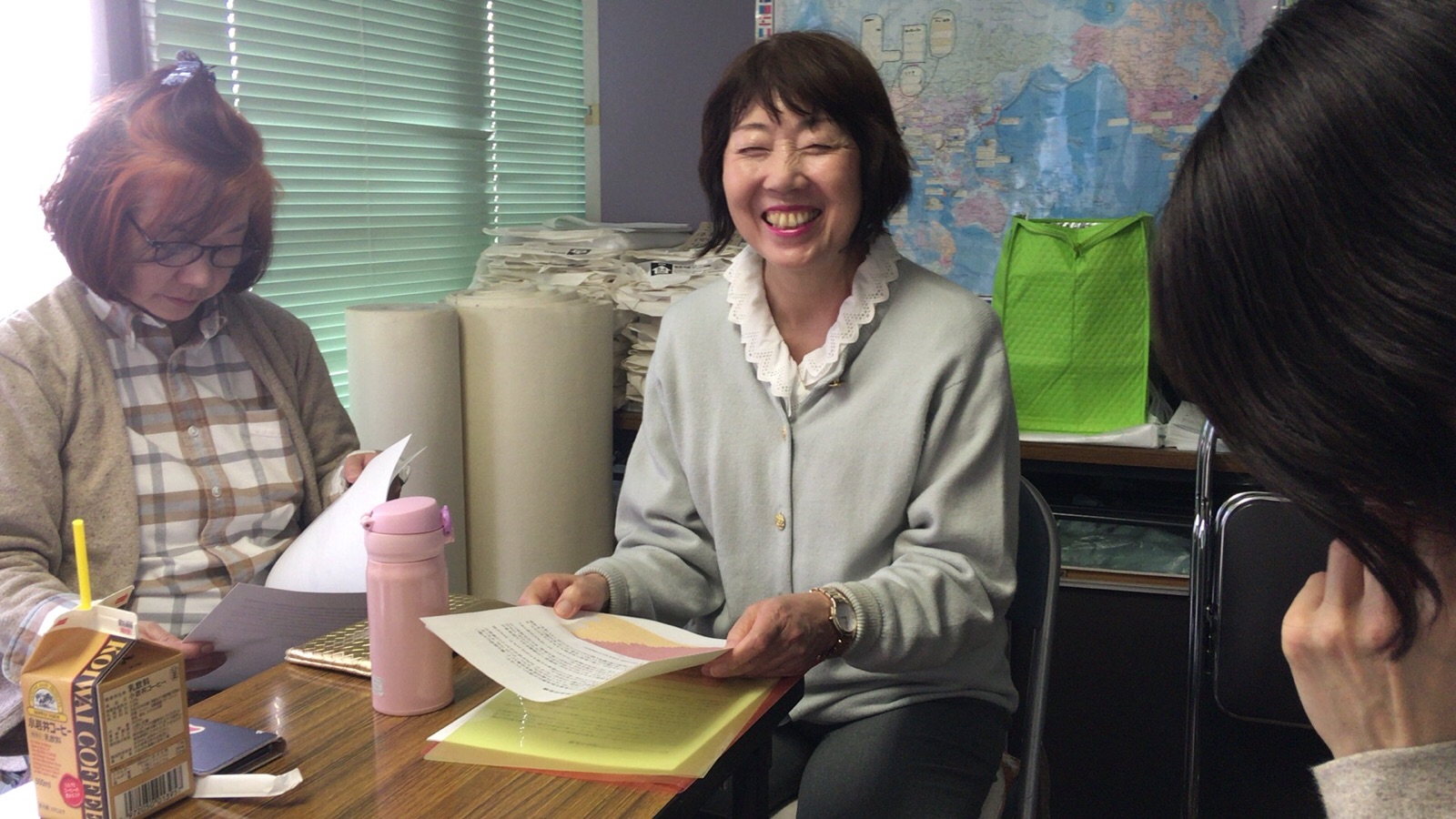 神学校スタッフの山中さんに、点数付けの終わった、後期試験答案用紙をお渡ししました。