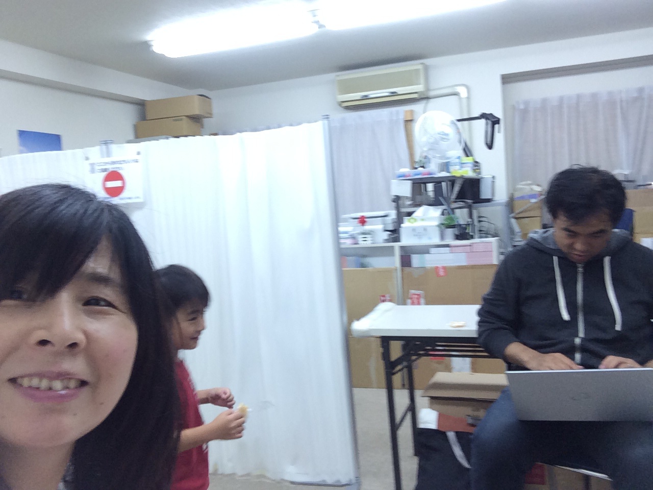 到着! そしたら、三本松さんはいらっしゃいません。 Giftsとヨシュア君がいます。 Kayano