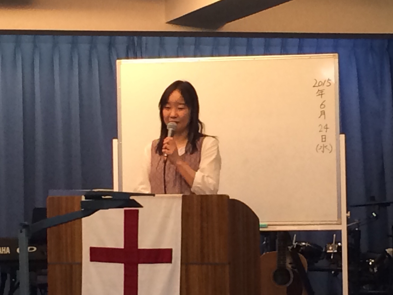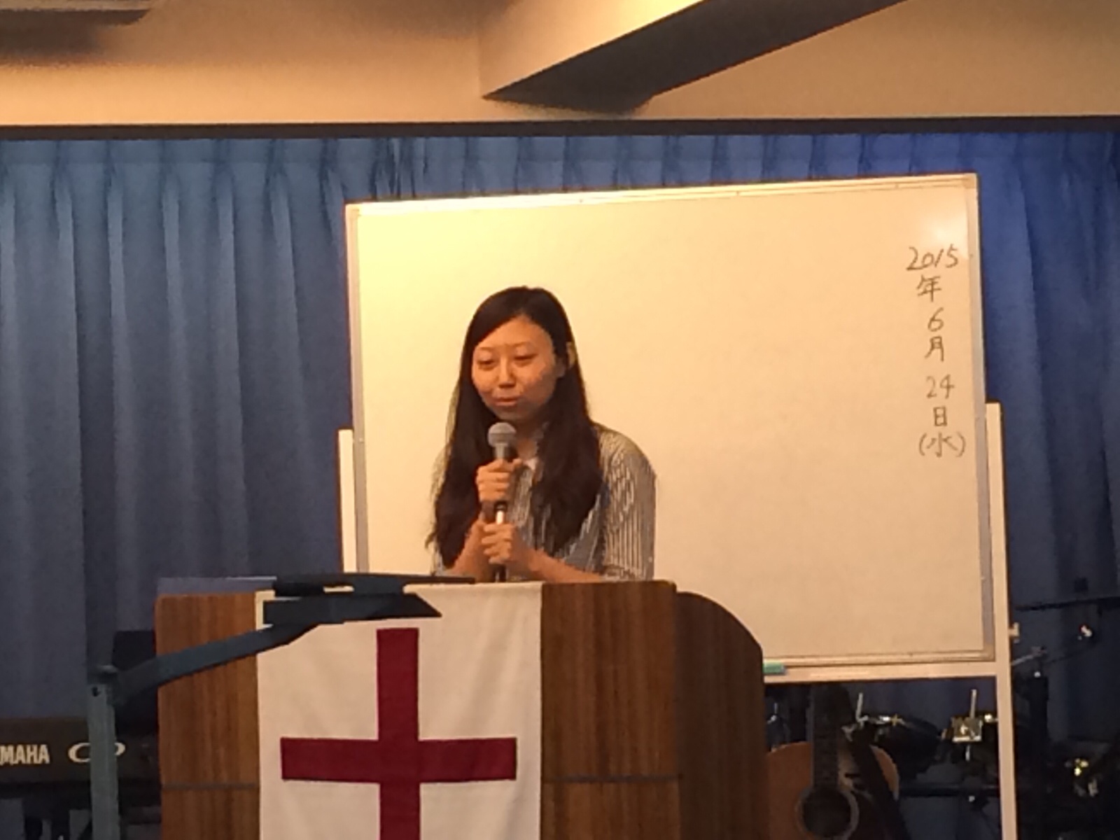 水曜祈祷会の証の時です。 米沢輝美ちゃんです。 昨日の社会人会のことを証しています。 Kayano