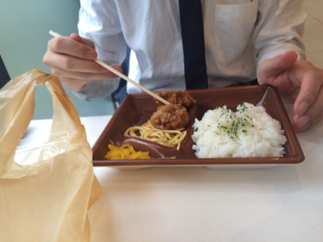 私と拓也くんは、唐揚げ弁当、ヨッシーはたぬきうどん ヨセフ