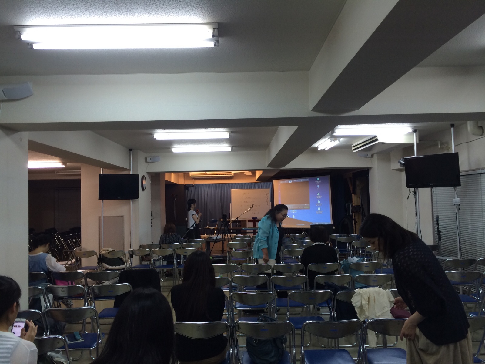 女子牧会学の前に。白馬賛美大会に出場するエウカリのお二人。広田さん、山中さんです。それから、もう一人は真境名園子さんです。