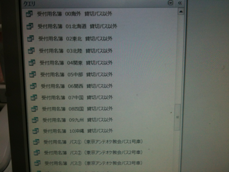 受付担当さんからのリクエストを受け、アクセスで各種抽出条件で受付名簿のクエリーをせっせと作りました。 あとまだレポート作りがあります。来年は新しいシステムになるらしいですが、勉強になります。 kato