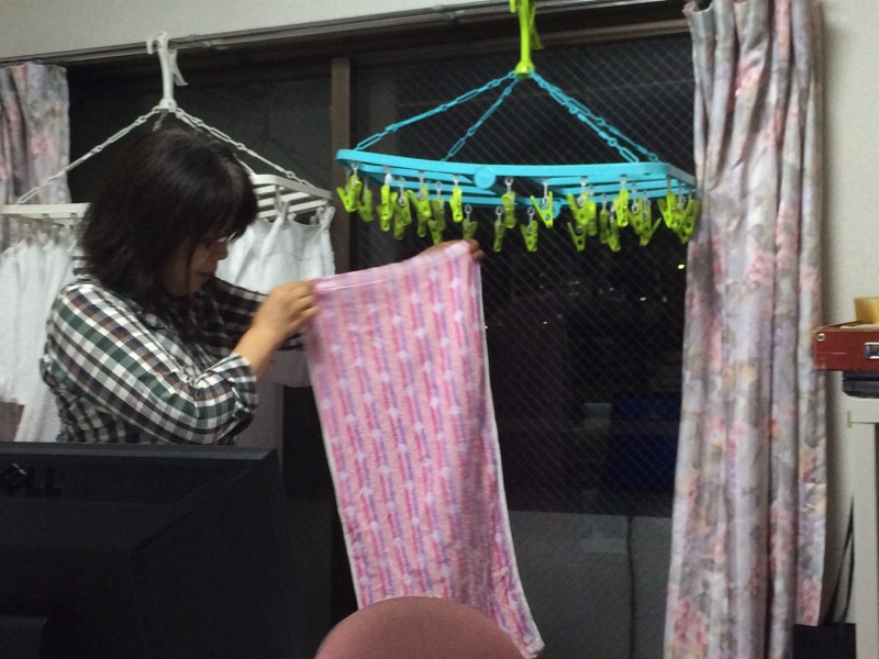 洗濯機の中に洗ったばかりのタオルを気付かれた星野さん。干してくださり、感謝します!amagai