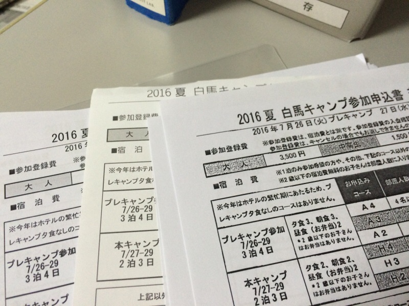 白馬キャンプのお申込みが届いています。感謝します! お申込みお待ちしています!