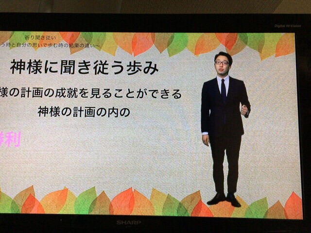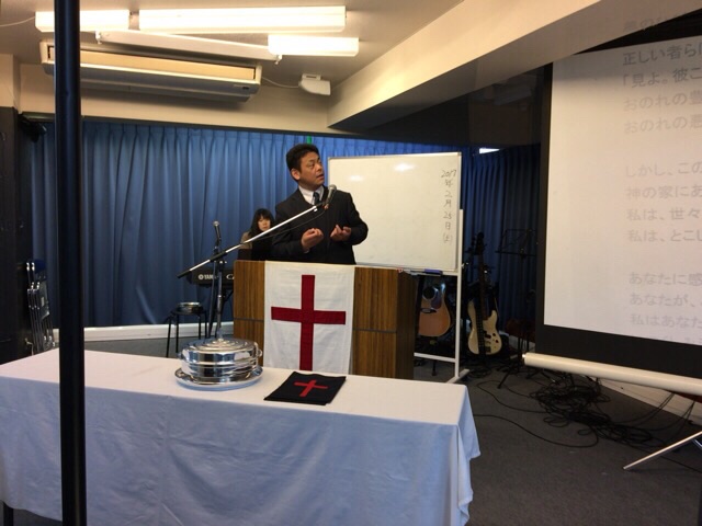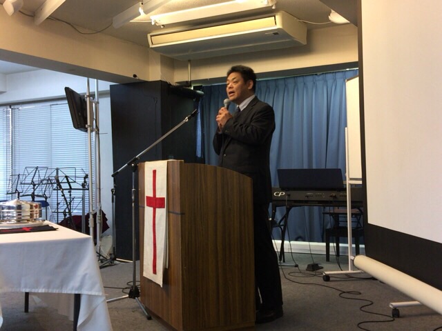 メッセンジャーは益川さん。 エペソ5:19.20からメッセージを語っておられます。