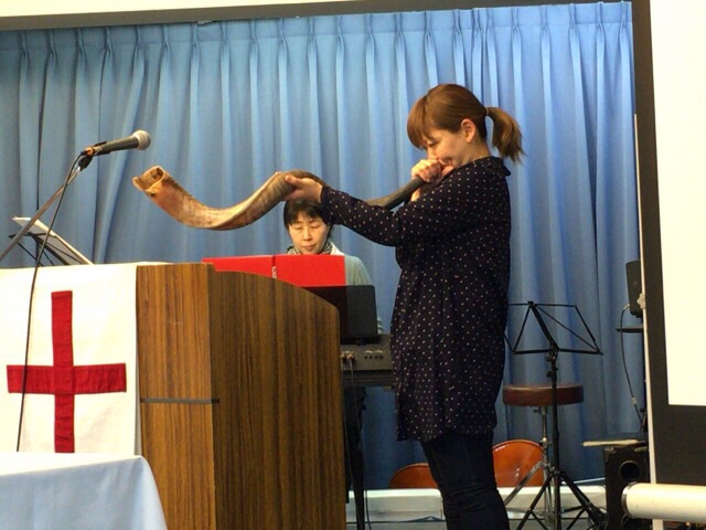 角笛が鳴りました。 火曜礼拝です。 Kayano