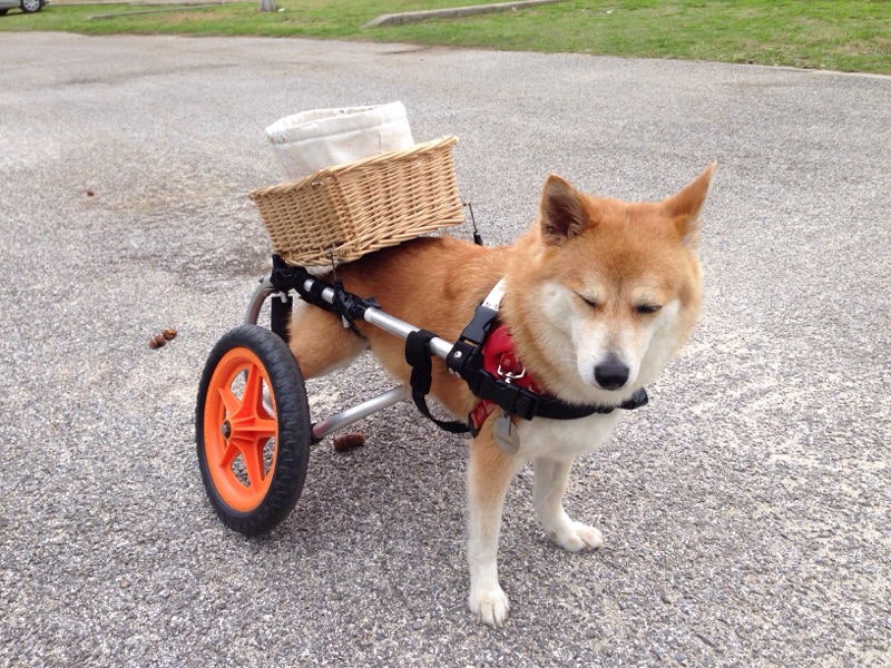 公園で、後ろ足に車輪を着けたマオちゃんがいました。 早いです。 大阪E