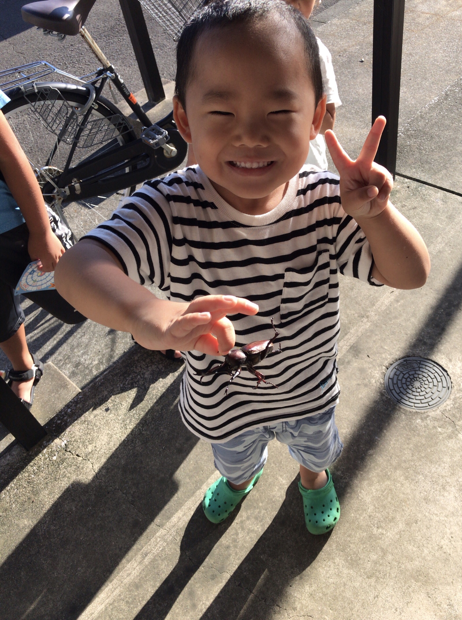玄関にいたかぶと虫。何回もぴたっと止まっていましたが、驚異の生命力!