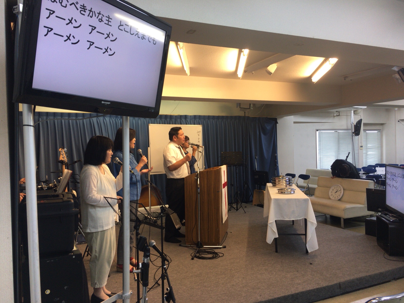 月曜第二礼拝の賛美の時です。