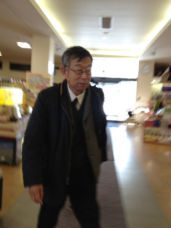He is checking eagerly. It seems Pastor Kitano’s tummy arousing criticism. Mr.O is afraid of that…