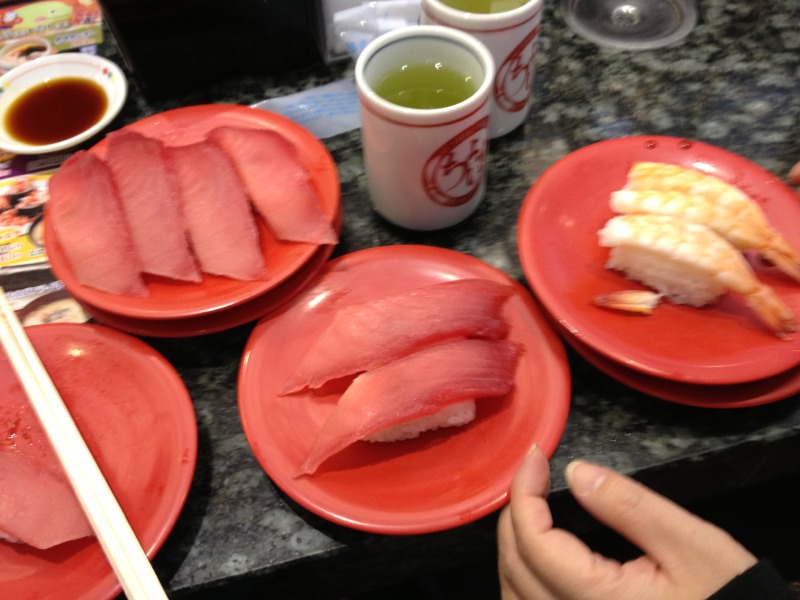 That is tuna. Pastor Kitano keep on choosing tuna. This is the fifth plate of tuna.