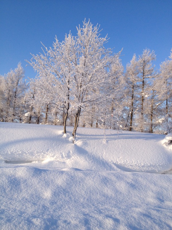 Blue sky suits snow in Hokkaido well.