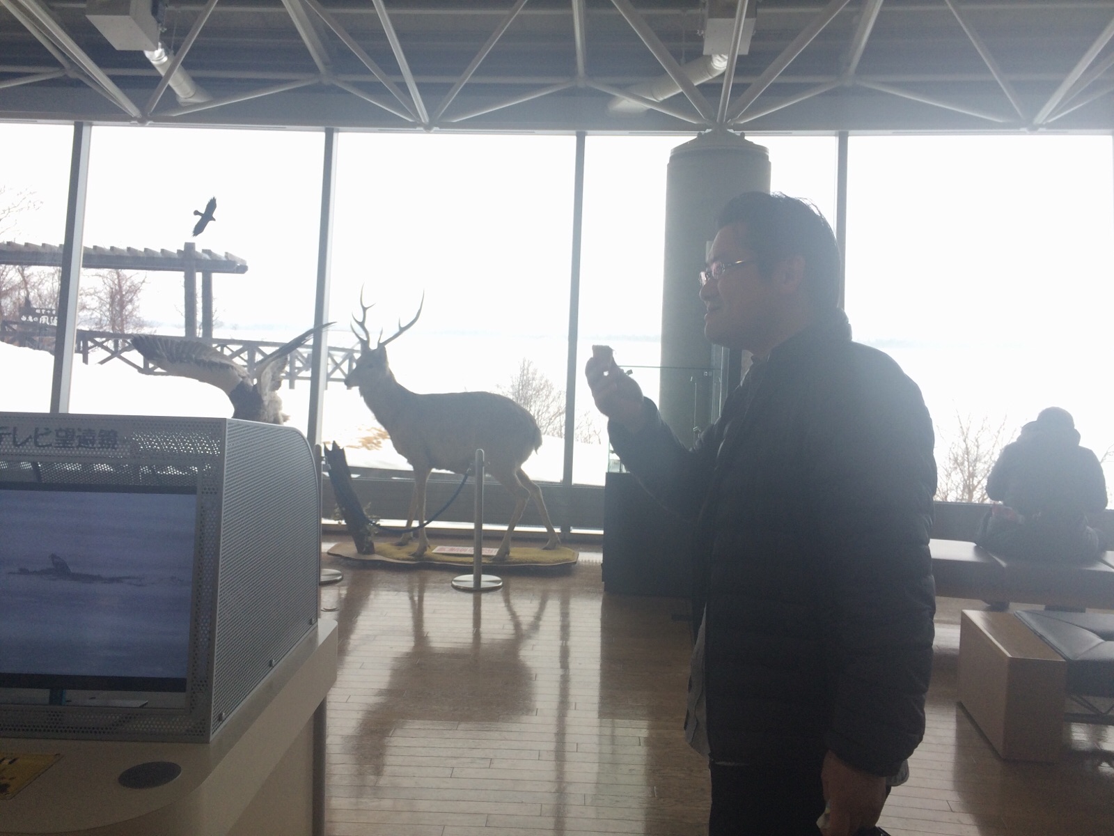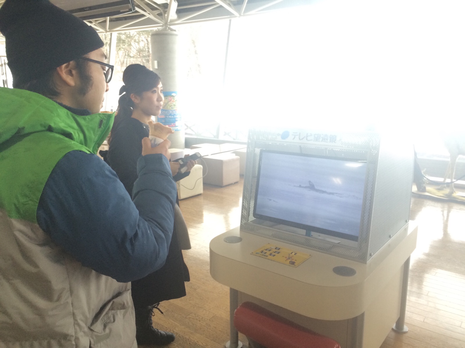 外の遠くにいるオオワシが望遠鏡から映されています!