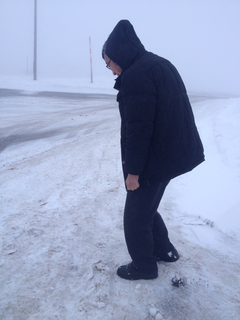 ツルツル路面を行くの図。 ほんと、滑るんです。