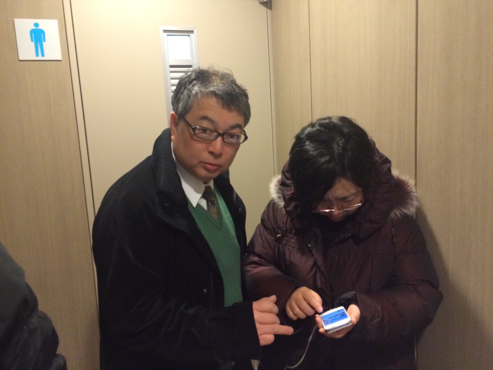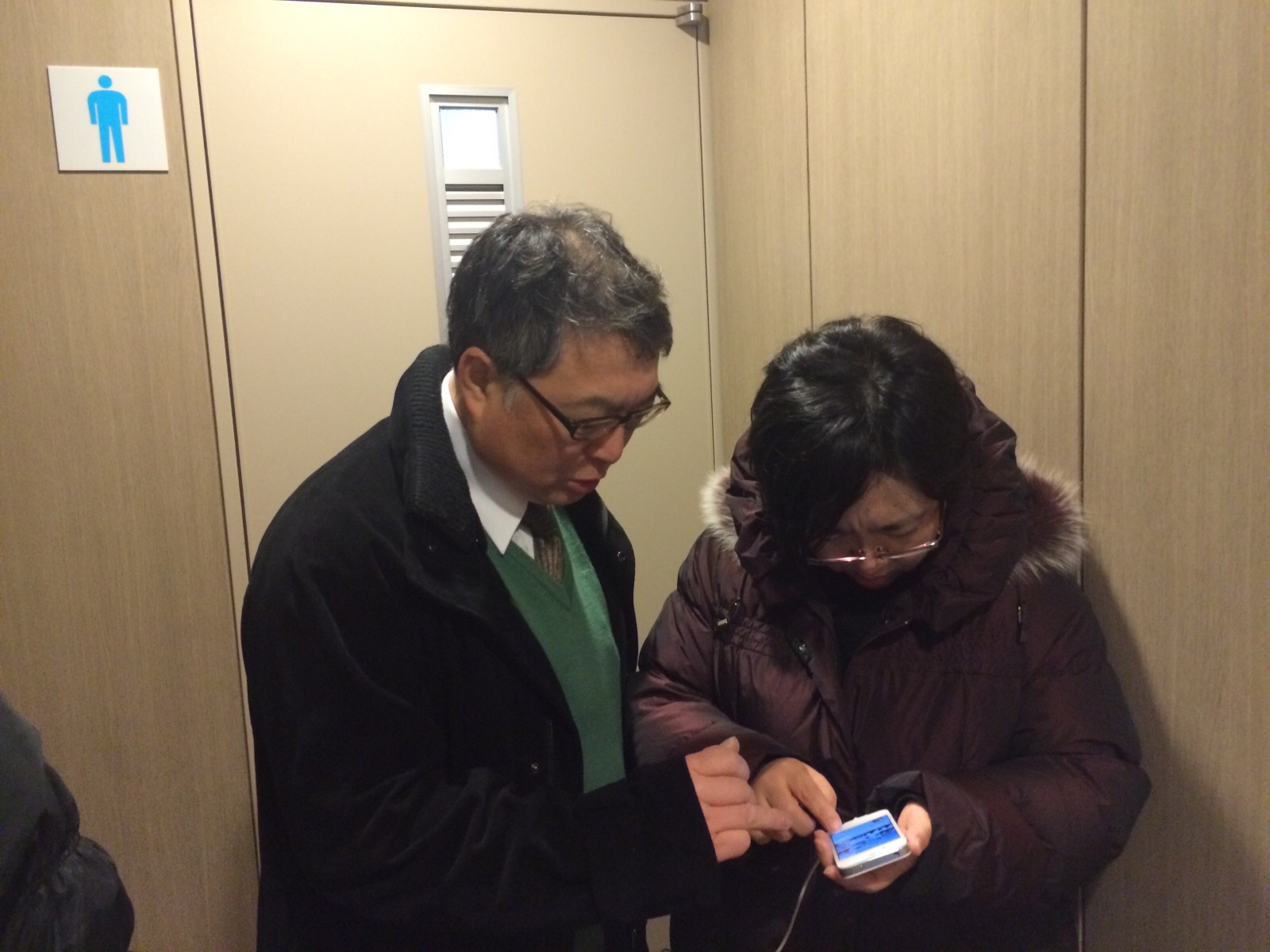 トイレの前でお話し中! 解決したのでしょうか?! あ、解決したようです!