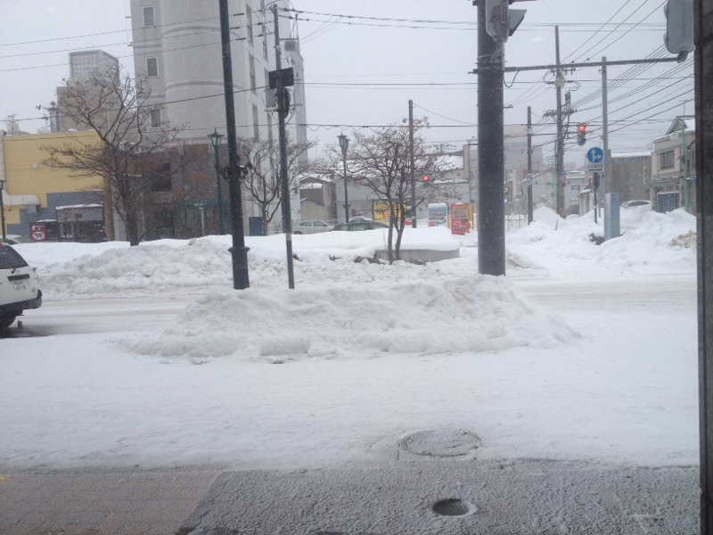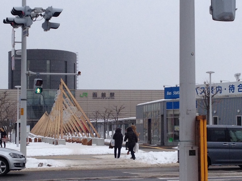 函館駅前、雪は其れ程でもありませんが、風が大変強いです。 外はまさに、風のひびき、です。 北エル