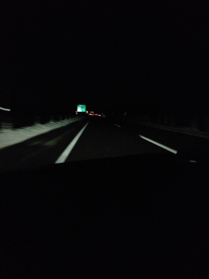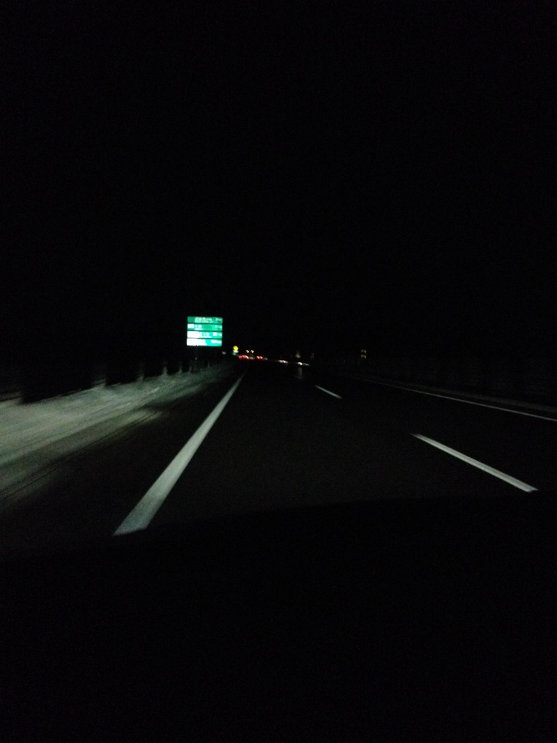 夜中の高速です。出ました。小動物。タヌキ?それともキツネ?夫婦で意見が異なりました。 北野号
