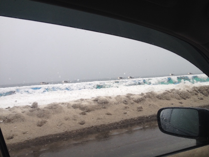 寒さにこごえる海。波も荒れています。津軽海峡冬景色〜!