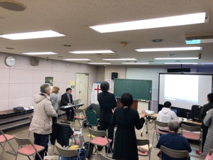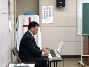 賛美を導くのは名古屋教会牧師の松田さんです。