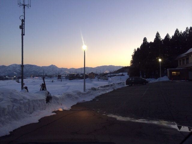 秋元牧師をホテルにお迎えに行きます!向こうの方のあかりはスキー場ですね!