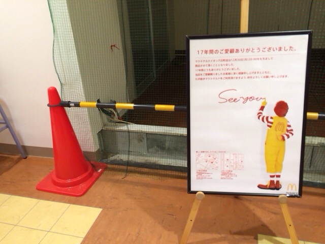 六日町でいつもいくイオンの中のマックが閉店していました! 17年間続いたそうです!