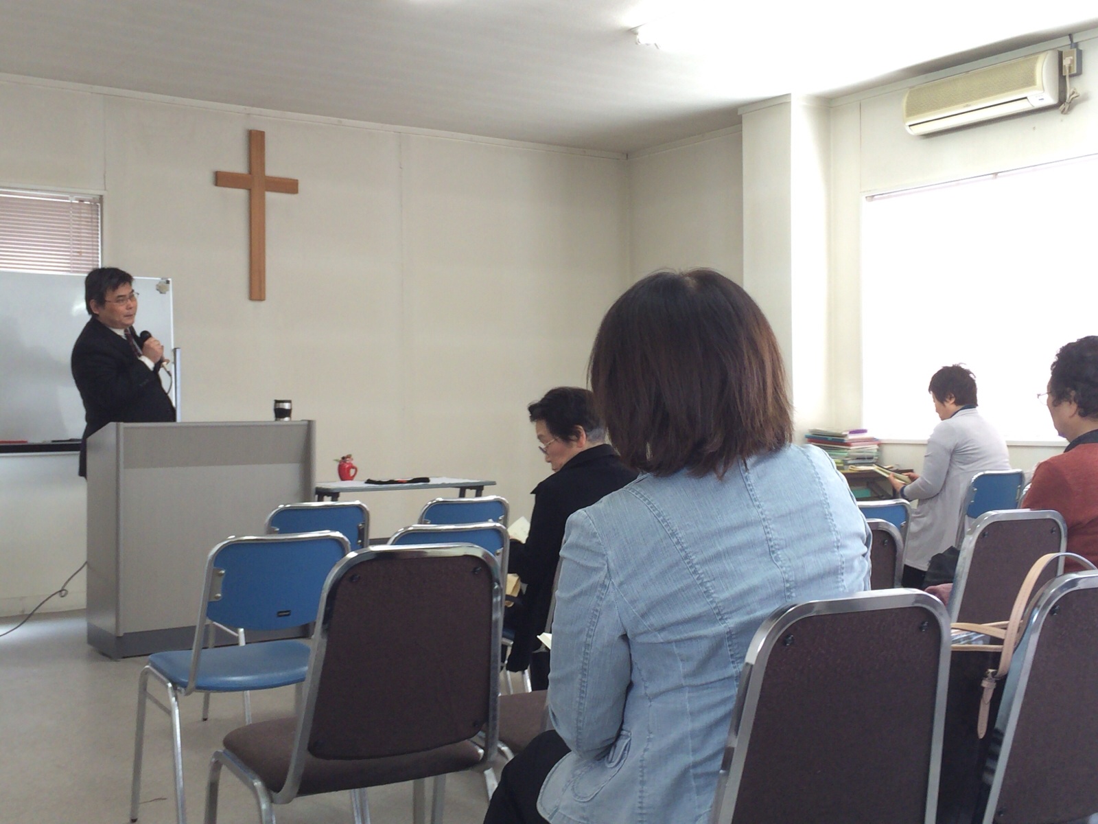 預言セミナーが始まりました。 賛美を導くのは常山牧師。