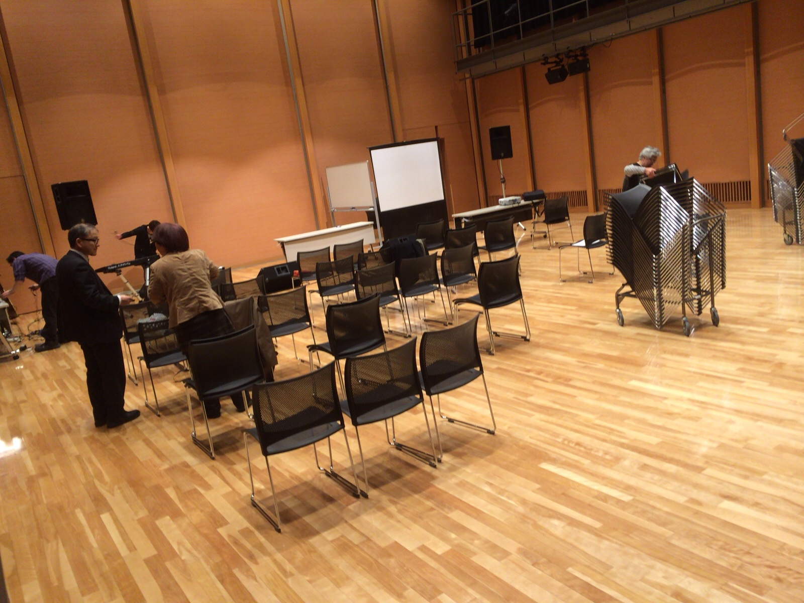 聖会が終わって後片付けをしています!お祈りの時ももたれています。
