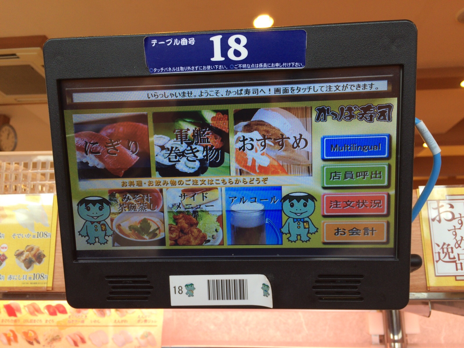 ここのかっぱ寿司、注文パネルは一人一台。 便利ですね!