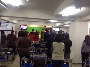 次は秋元さんが賛美を導きます。 皆さん、一緒に賛美をしています