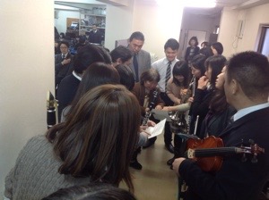 今日の特別賛美はオーケストラの皆さん。 出番前にお祈りしています。